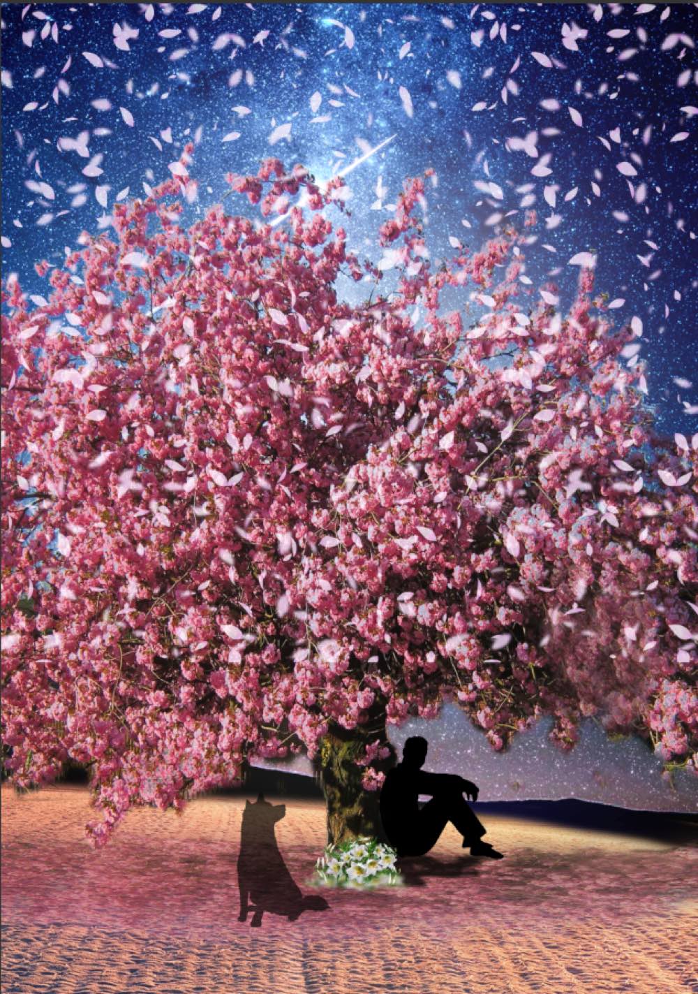 Photoshopの合成の練習の一環で始めた作品になります。人物と動物の素材はベクター素材を元にライティングを加えて、平面の素材をより立体的に捉えるよう作成しました。
