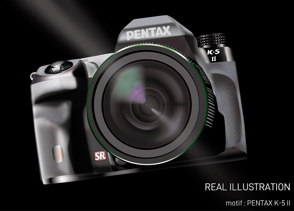 グリップのゴム感や、金属の質感、レンズの反射光にこだわりながら作成しました。